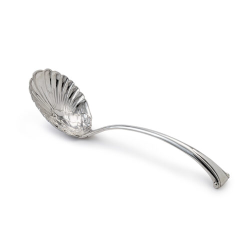 DUTCH SILVER SOUP LADLE view DUTCH SILVER TABLEBELL view DUTCH SILVER COFFEE URN view Pair of Dutch silver candlesticks view Two-piece silver pumkin service view Parcel-gilt silver patron sign view